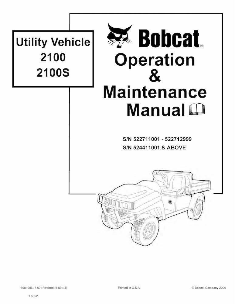 Bobcat 2100, 2100S utility vehicle pdf operation & maintenance manual