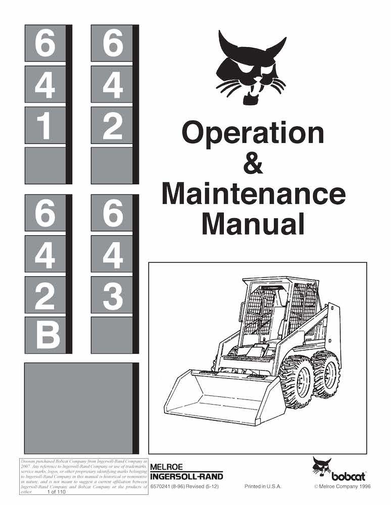 Bobcat 641, 642, 642B, 643 skid loader pdf operation and maintenance manual