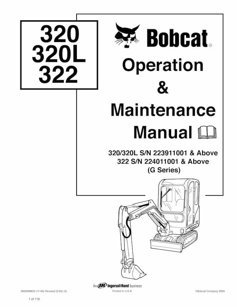 Bobcat 320, 320L, 322 compact excavator pdf operation and maintenance manual
