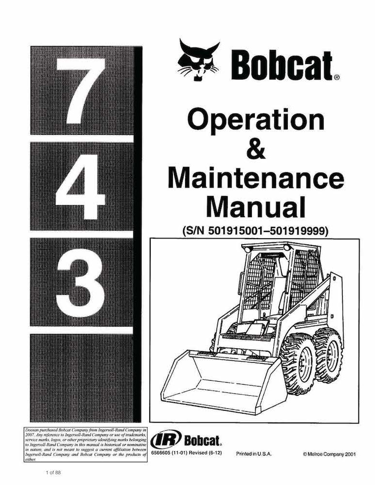 Bobcat 743 skid loader pdf operation & maintenance manual