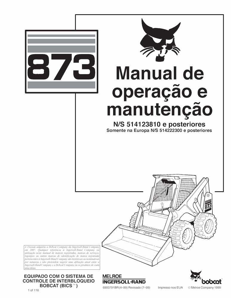 Bobcat 873 skid steer loader pdf operation and maintenance manual PT