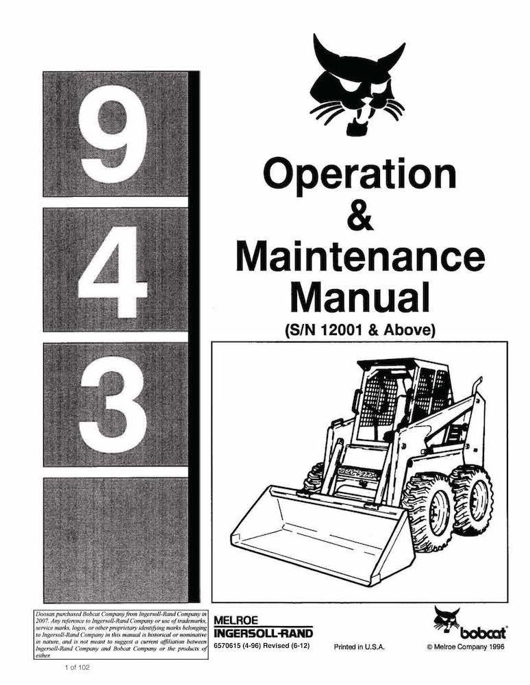 Bobcat 943 skid loader pdf operation & maintenance manual