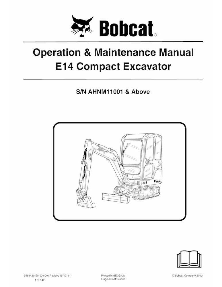 Bobcat E14 compact excavator pdf operation & maintenance manual
