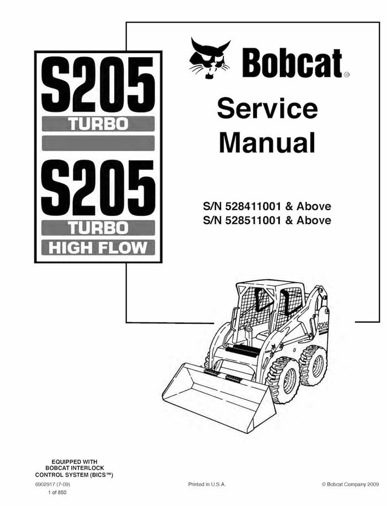 Bobcat S205 skid steer loader pdf service manual