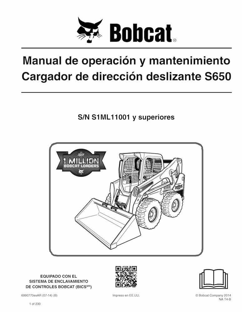Bobcat S650 skid steer loader pdf operation and maintenance manual ES