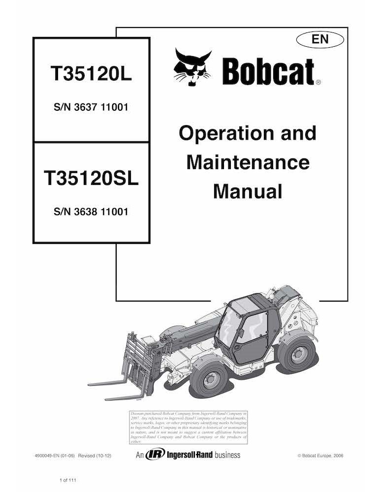 Bobcat T35120SL, T35120L telescopic handler pdf operation & maintenance manual