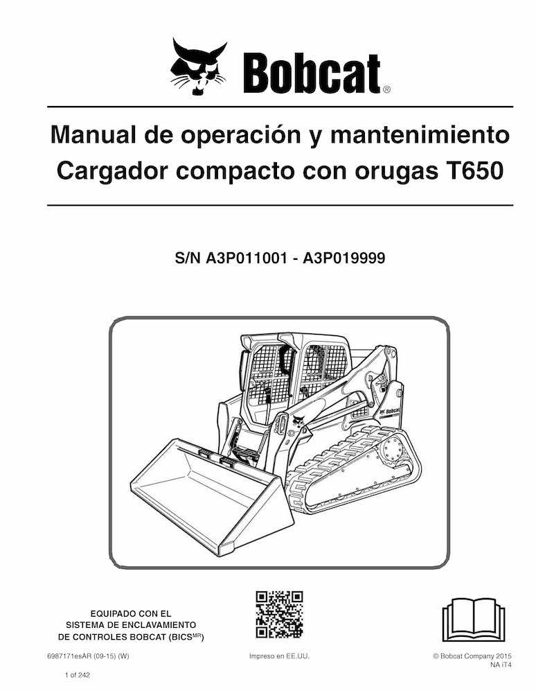 Bobcat T650 compact track loader pdf operation and maintenance manual ES