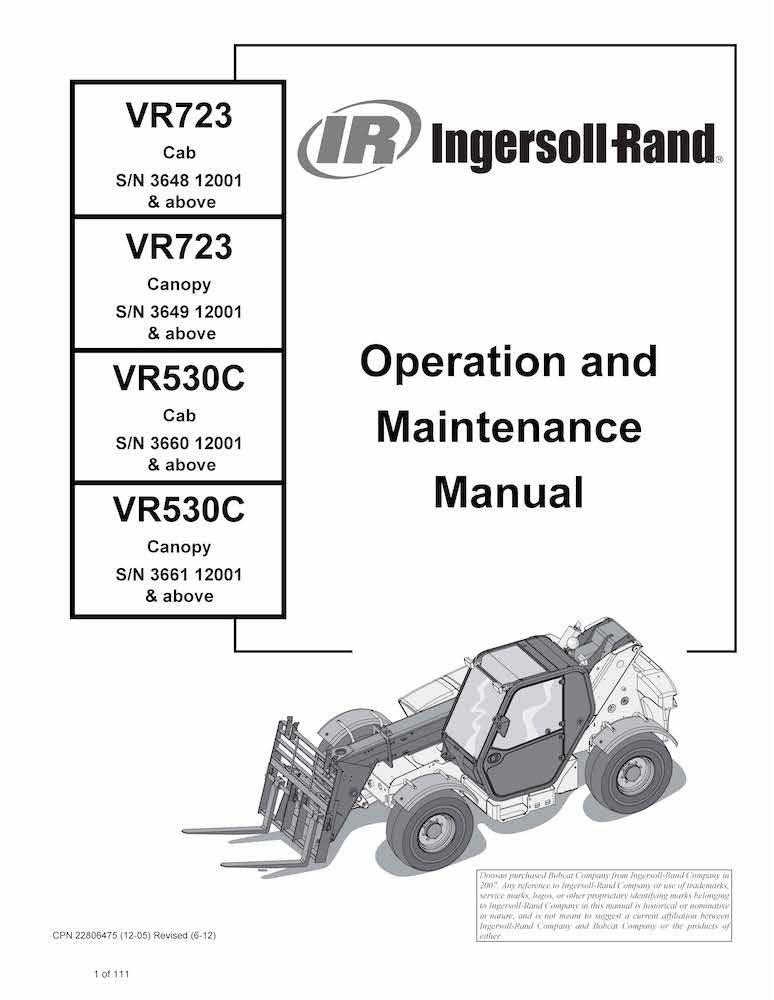 Operation & Maintenance manual for VR723, VR530C telescopic tool carrier is available for instant download after purchase. Download a free preview pdf file of the original document, and decide whether it suits your needs. This preview file in the Attachments section includes the initial part of the main document, about 5% of the pages, and you may get acquainted with the contents of the document.