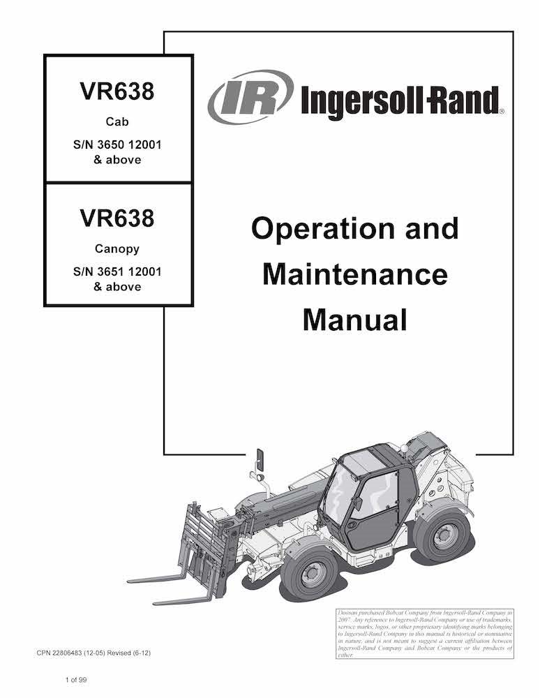Bobcat VR638 telescopic tool carrier pdf operation & maintenance manual