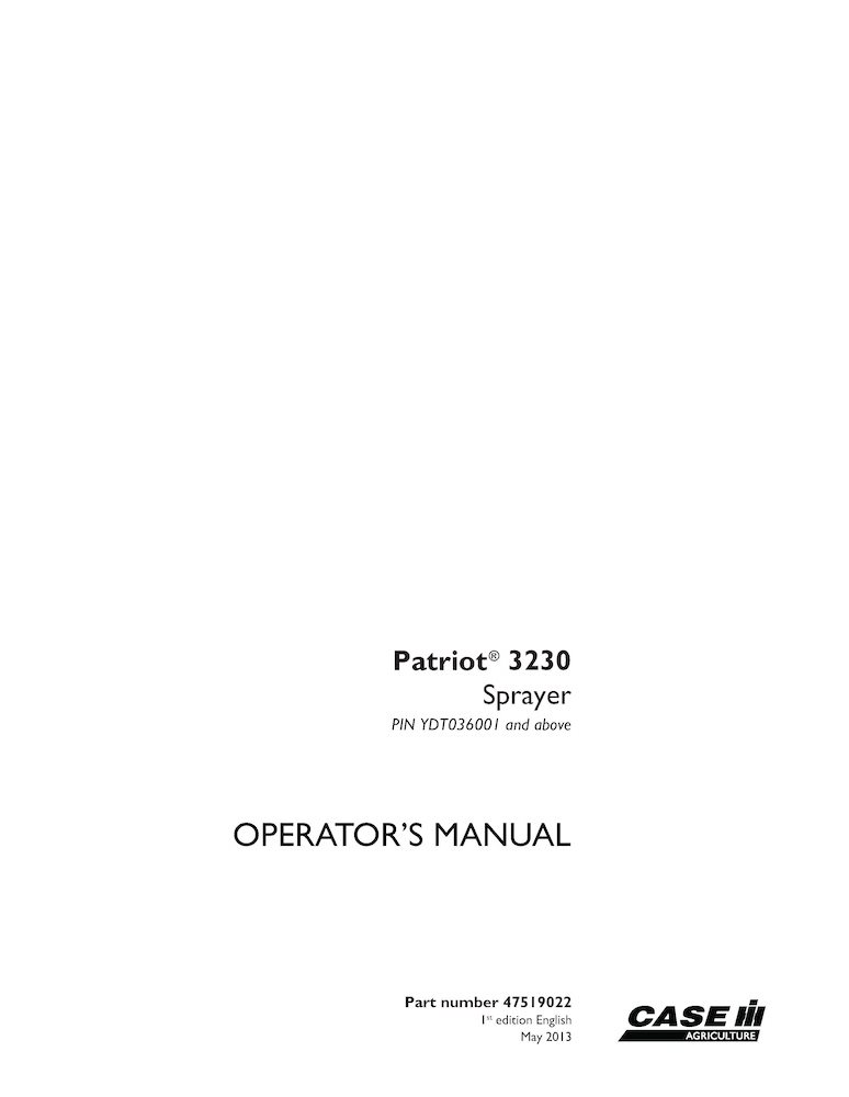 Case Patriot 3230 PIN YDT036001- sprayer pdf operator's manual (47519022)