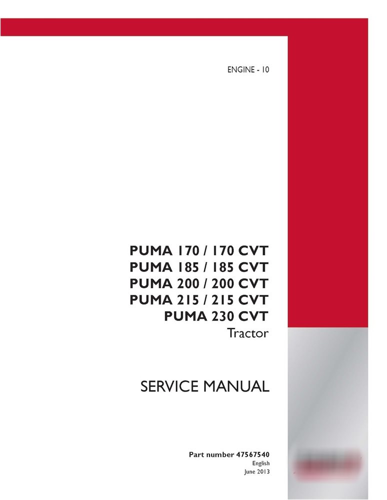 Service manual for Case IH Puma 170 / 185 / 200 / 215 / 230 CVT is available for instant download after purchase at any time. Can be downloaded and viewed on any device. Download free preview PDF file using link in Attachments TAB