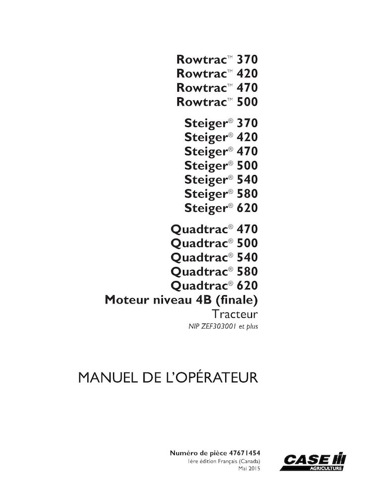 Case Rowtrac 370-500, Steiger 370-620, Quadtrac 470-620 PIN ZEF30300- tractor pdf operator's manual FR (47671454)