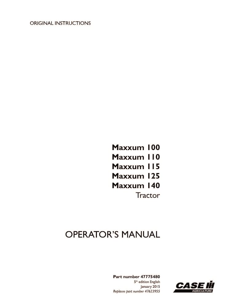 Case Maxxum 100, 110, 115, 125, 140 tractor pdf operator's manual (47775480)