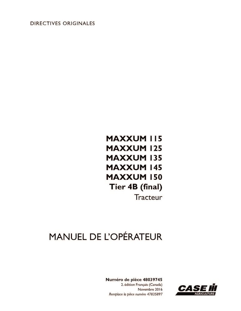 Case Maxxum 115, 125, 135, 145, 150 Tier 4B tractor pdf operator's manual FR (48039745)