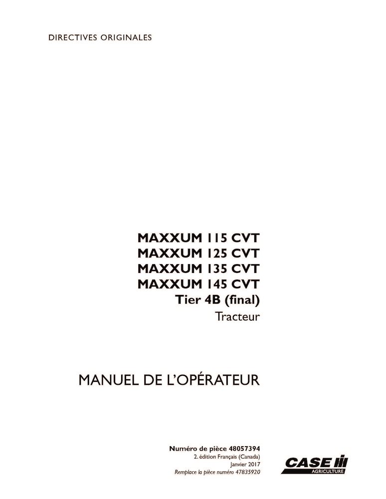Case Maxxum 115, 125, 135, 145 CVT Tier 4B tractor pdf operator's manual FR (48057394)