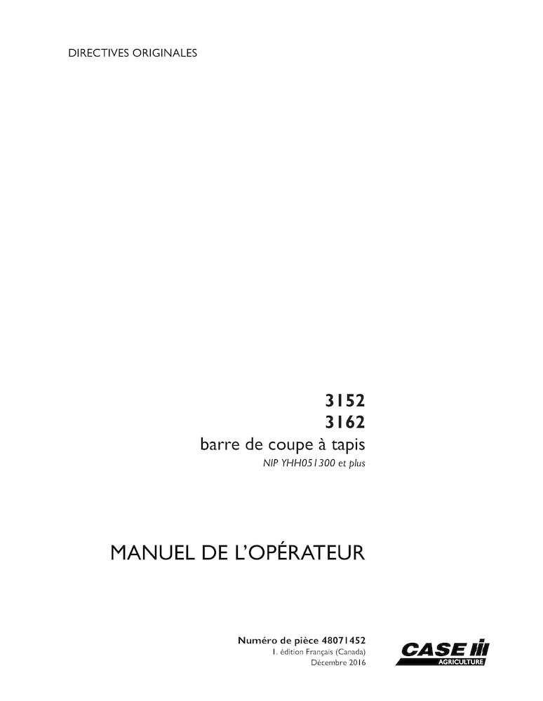 Case 3152, 3162 PIN YHH051300- draper header pdf operator's manual FR (48071452)