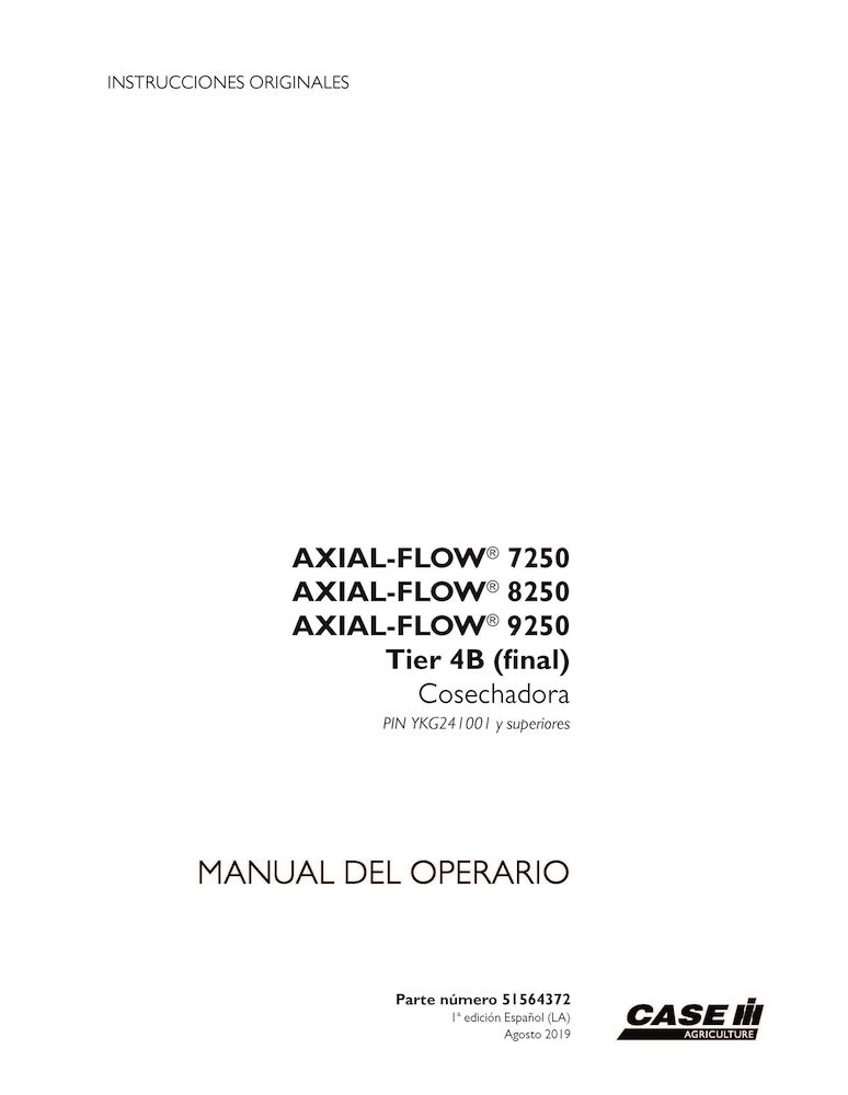 Case Axial Flow 7250, 8250, 9250 PIN YKG241001- combine pdf operator's manual ES (51564372)