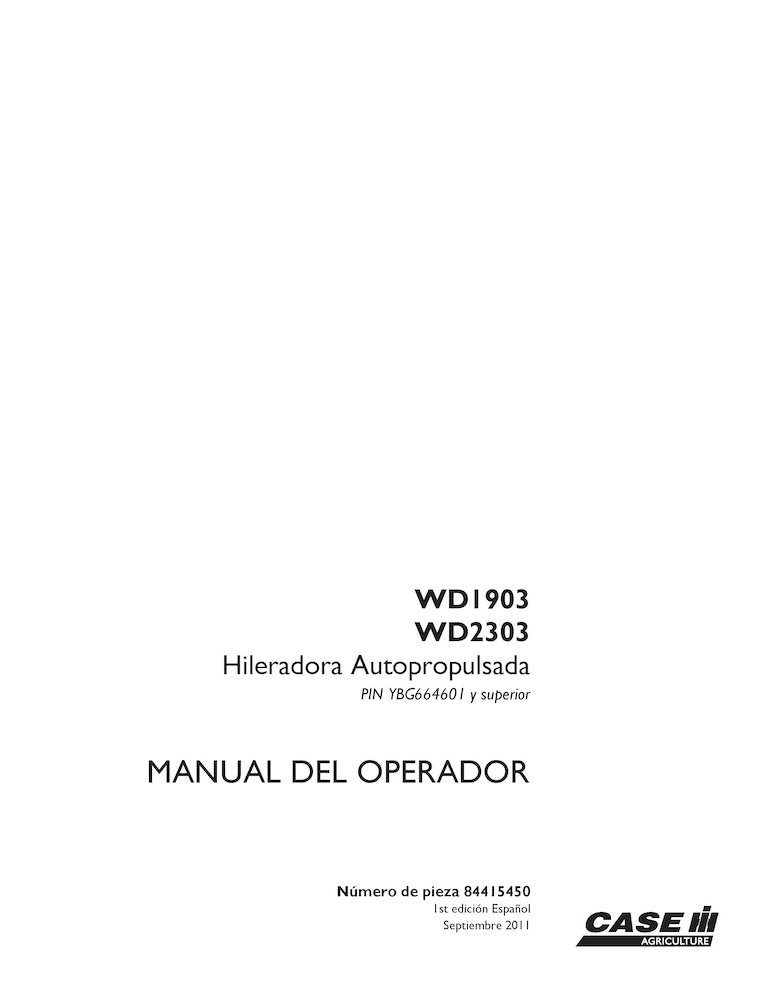 Case WD1903, WD2303 PIN YBG664601- windrower pdf operator's manual ES (84415450)