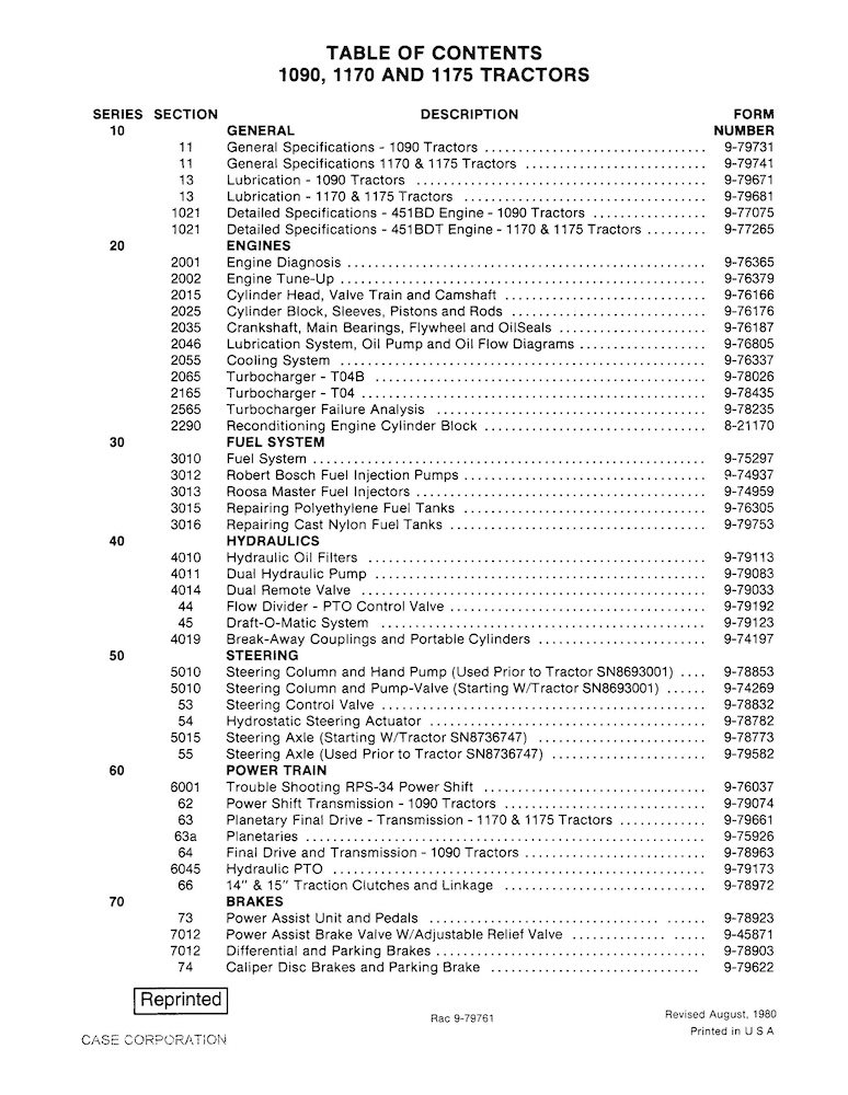 Case 1090, 1170, 1175 tractor pdf service manual (9-79771)