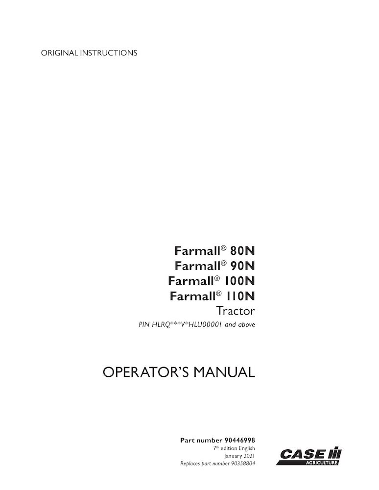 Case Farmall 80N-110N PIN HLRQ***V*HLU00001- tractor pdf operator's manual (90446998)