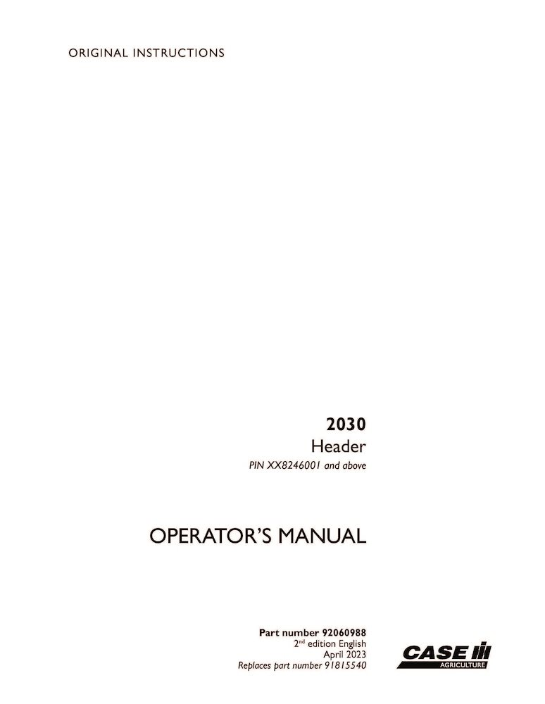 Case 2030 PIN x8246001- header pdf operator's manual (92060988)