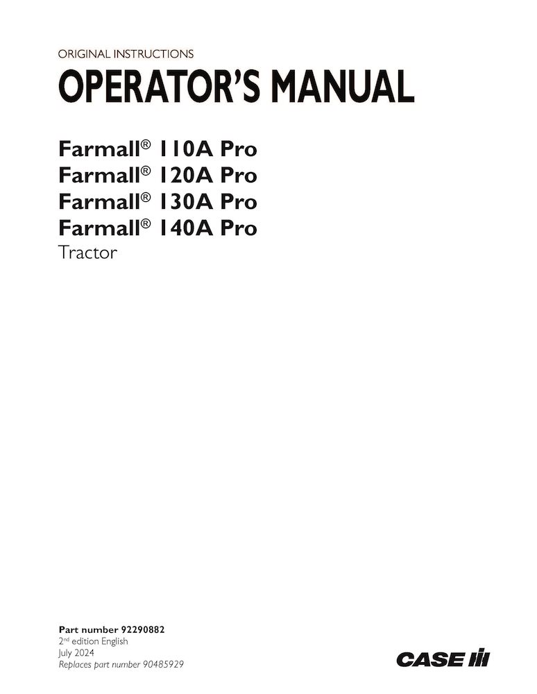 Case Farmall 110A-140A Pro tractor pdf operator's manual (92290882)