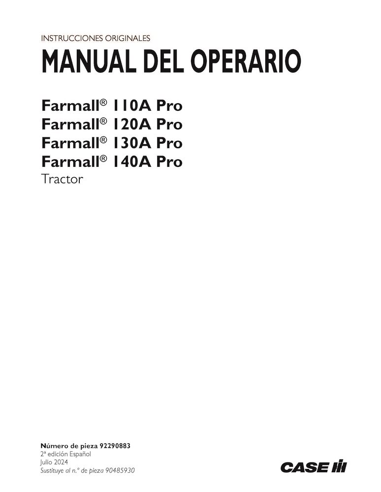 Case Farmall 110A-140A Pro tractor pdf operator's manual ES (92290883)