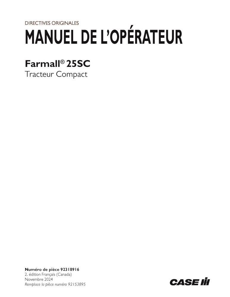 Case Farmall 25SC compact tractor pdf operator's manual FR (92318916)