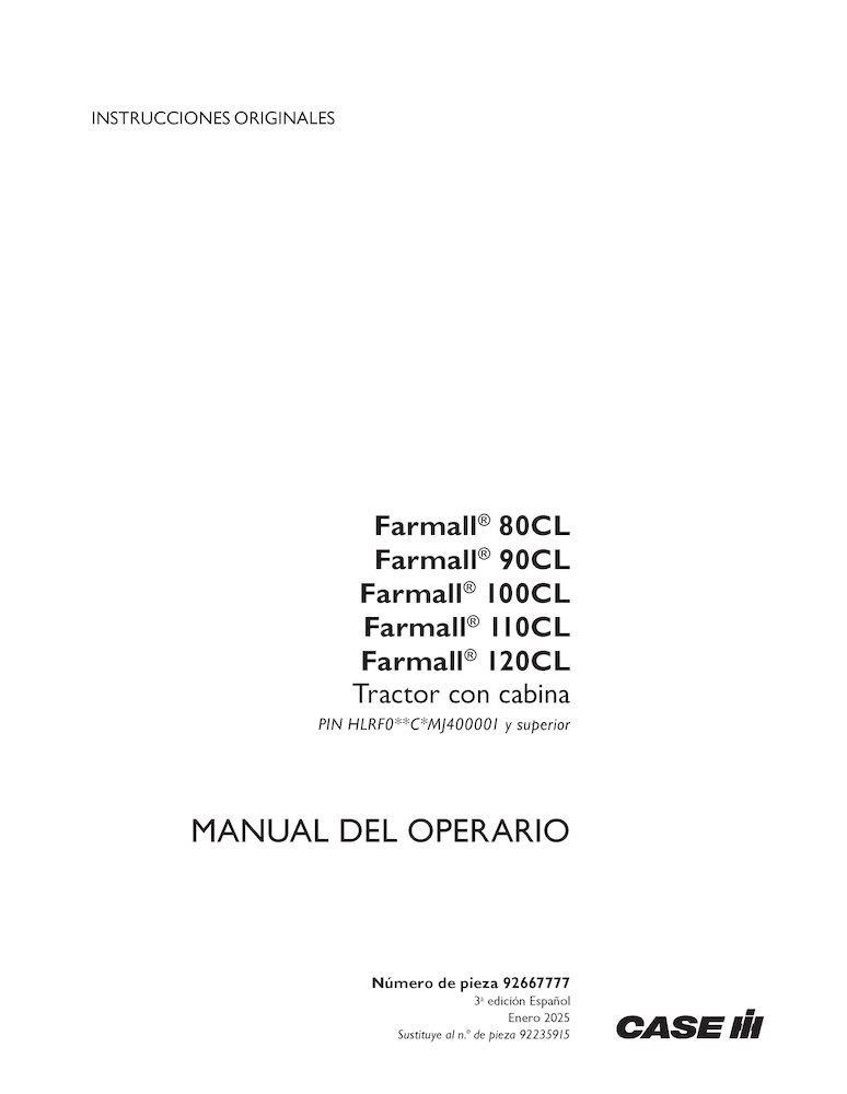 Case Farmall 80CL, 90CLm 100CL, 110CL, 120CL tractor pdf operator's manual ES (92667777)