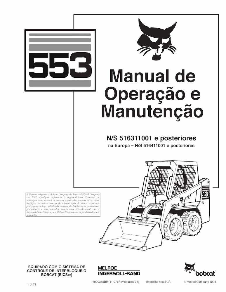 Bobcat 553 minicargadora pdf manual de operación y mantenimiento PT