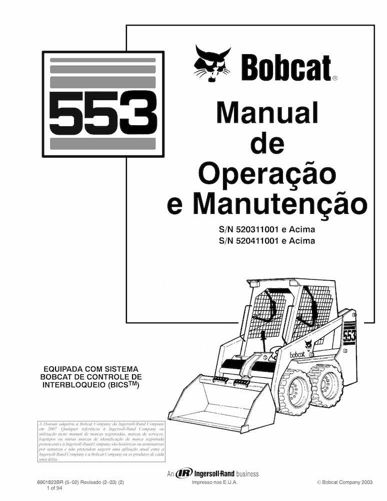 Bobcat 553 minicargadora pdf manual de operación y mantenimiento PT