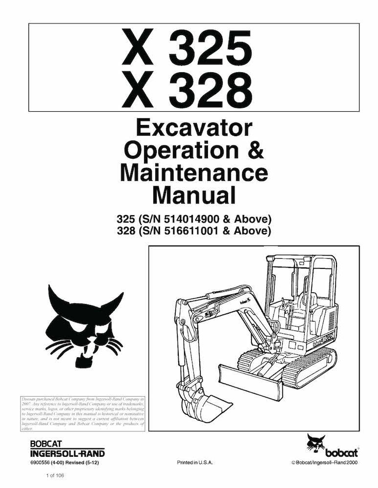 Bobcat X325, X328 excavadora compacta pdf manual de operación y mantenimiento