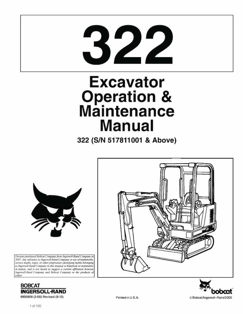 Bobcat 320, 320L, 322 excavadora compacta pdf manual de operación y mantenimiento