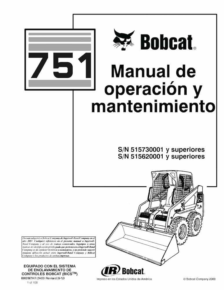 Minicargadora Bobcat 751 pdf manual de operación y mantenimiento ES
