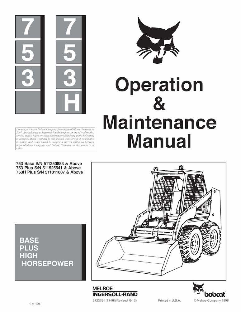 Bobcat 753, 753H minicargador pdf manual de operación y mantenimiento