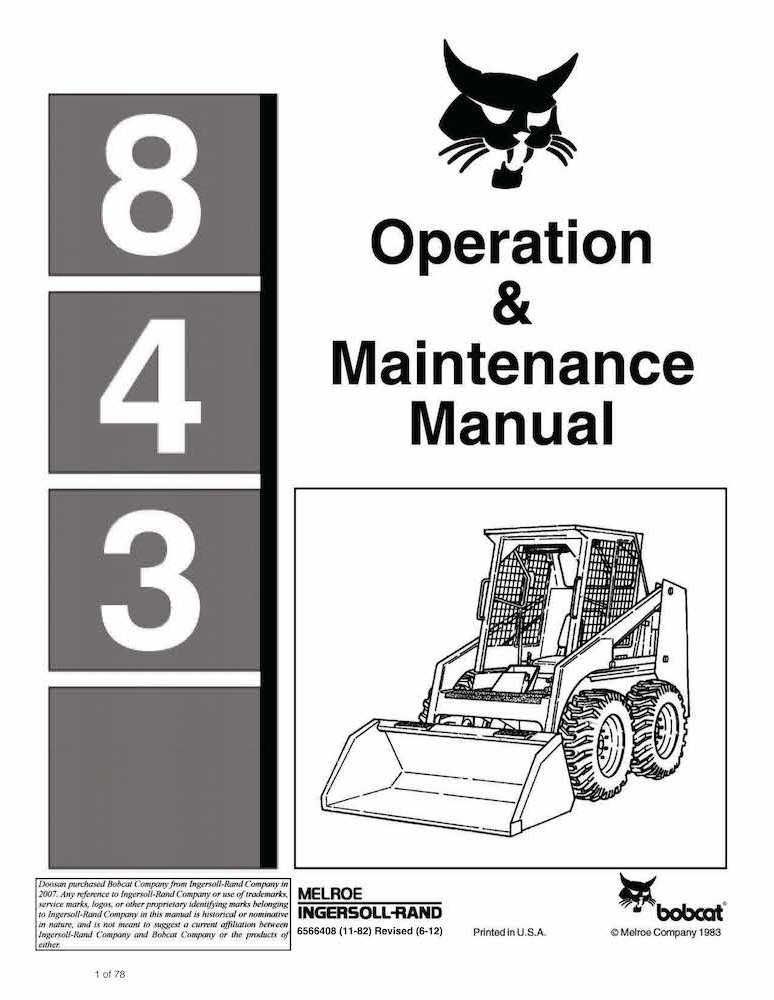 Bobcat 843 skid loader pdf manual de operación y mantenimiento