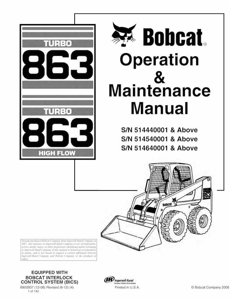 Bobcat 863, 863H cargador deslizante pdf manual de operación y mantenimiento