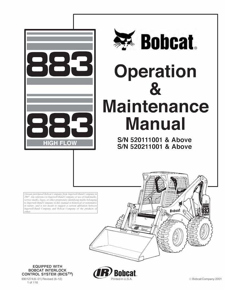 Bobcat 883, 883H cargador deslizante pdf manual de operación y mantenimiento