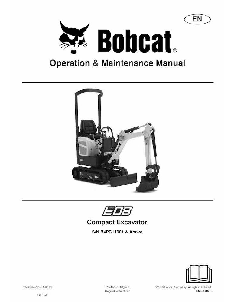 Bobcat E08 excavadora compacta pdf manual de operación y mantenimiento