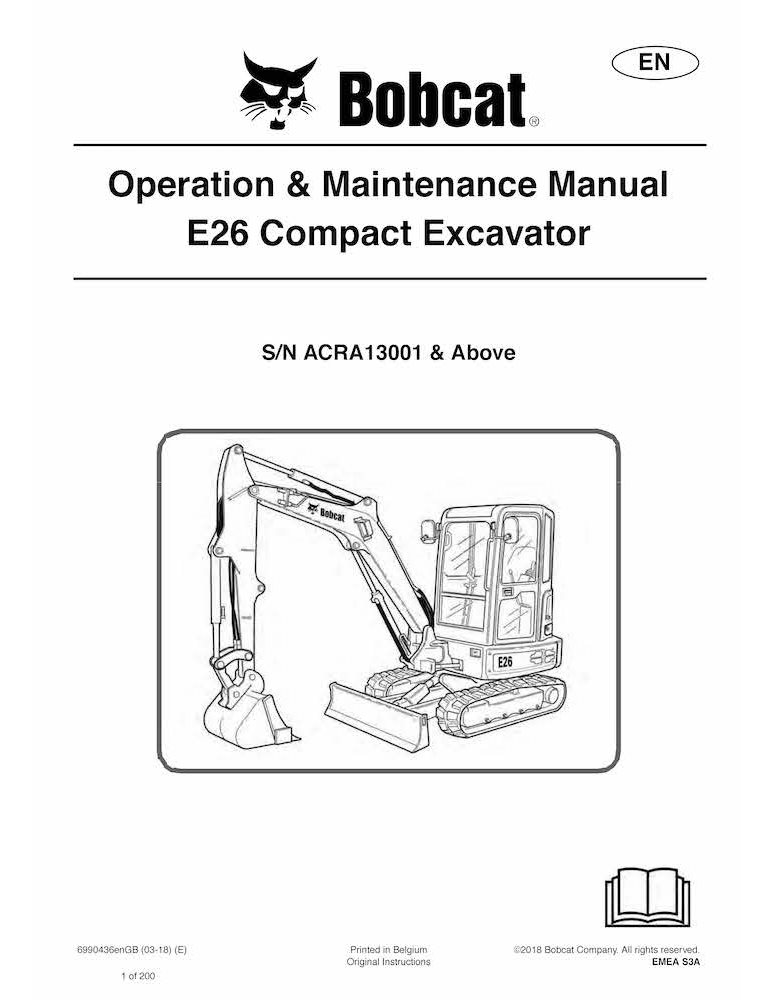 Bobcat E26 excavadora compacta pdf manual de operación y mantenimiento