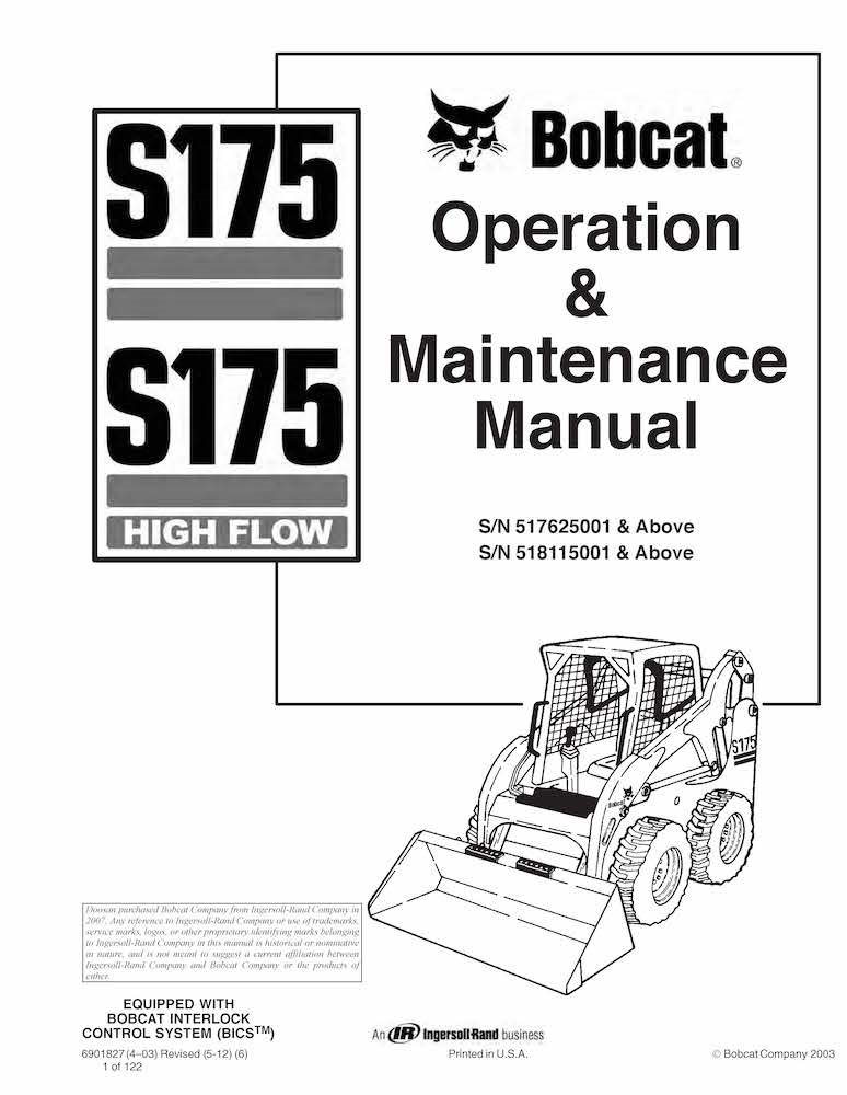 Bobcat S175, S175H cargador de dirección deslizante pdf manual de operación y mantenimiento