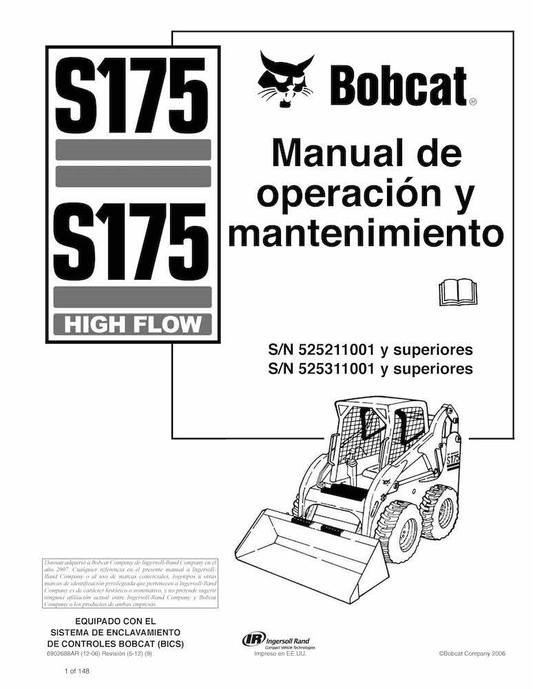 Minicargadora Bobcat S175 pdf manual de operación y mantenimiento ES