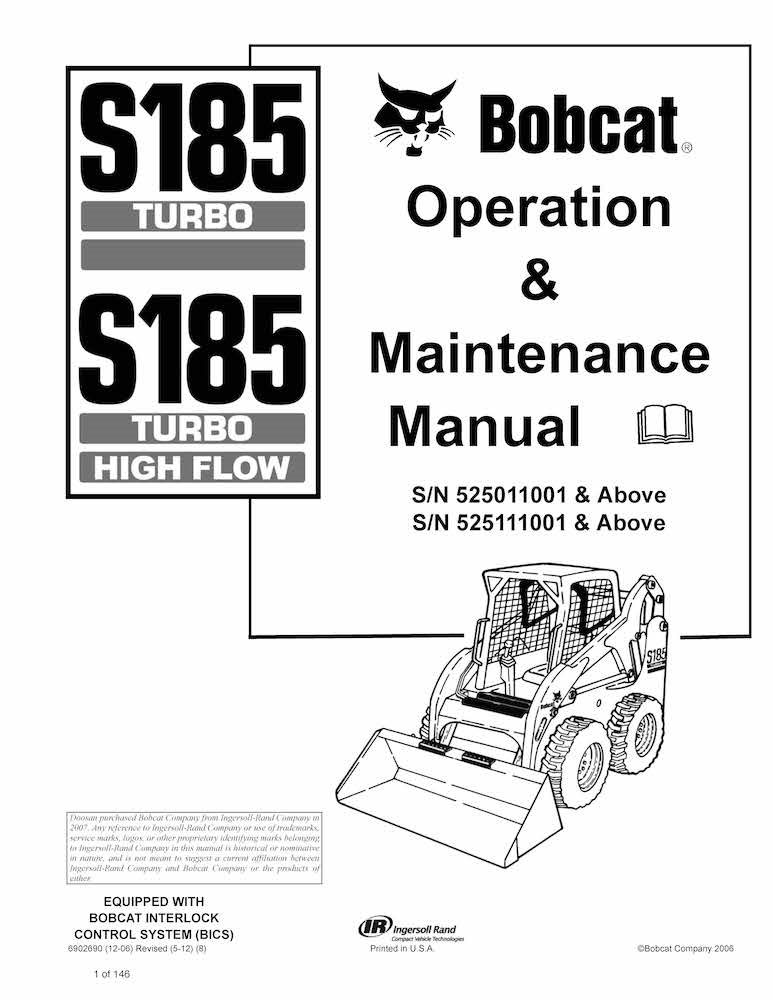 Bobcat S185, S185H cargador de dirección deslizante pdf manual de operación y mantenimiento