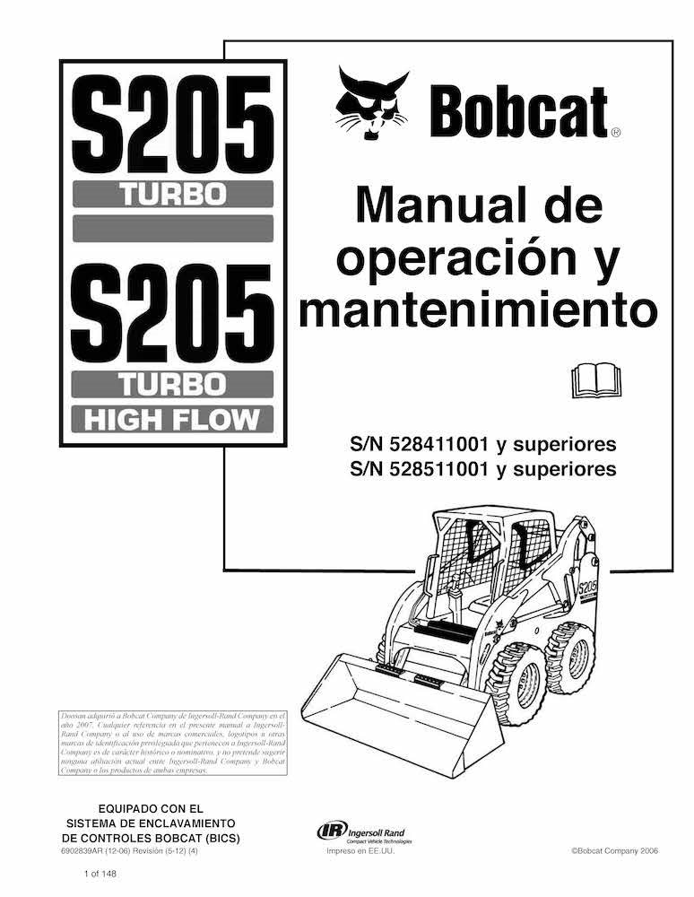 Minicargadora Bobcat S205 pdf manual de operación y mantenimiento ES
