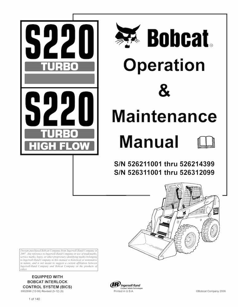 Bobcat S220, S220H cargador de dirección deslizante pdf manual de operación y mantenimiento