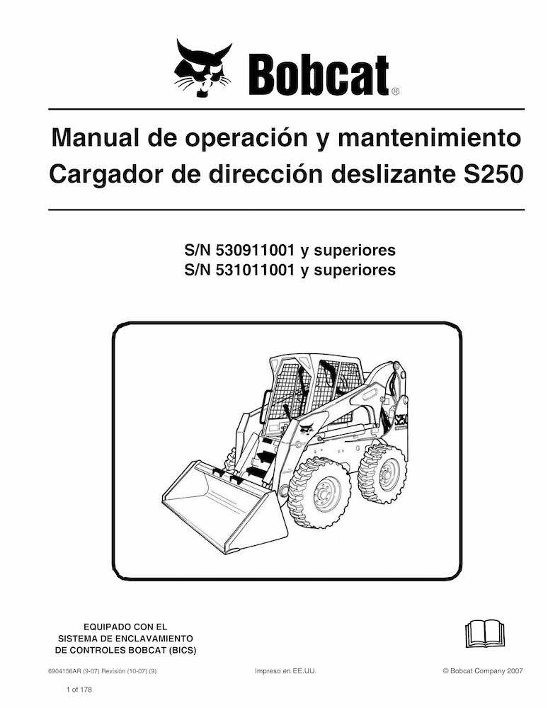 Minicargadora Bobcat S250 pdf manual de operación y mantenimiento ES