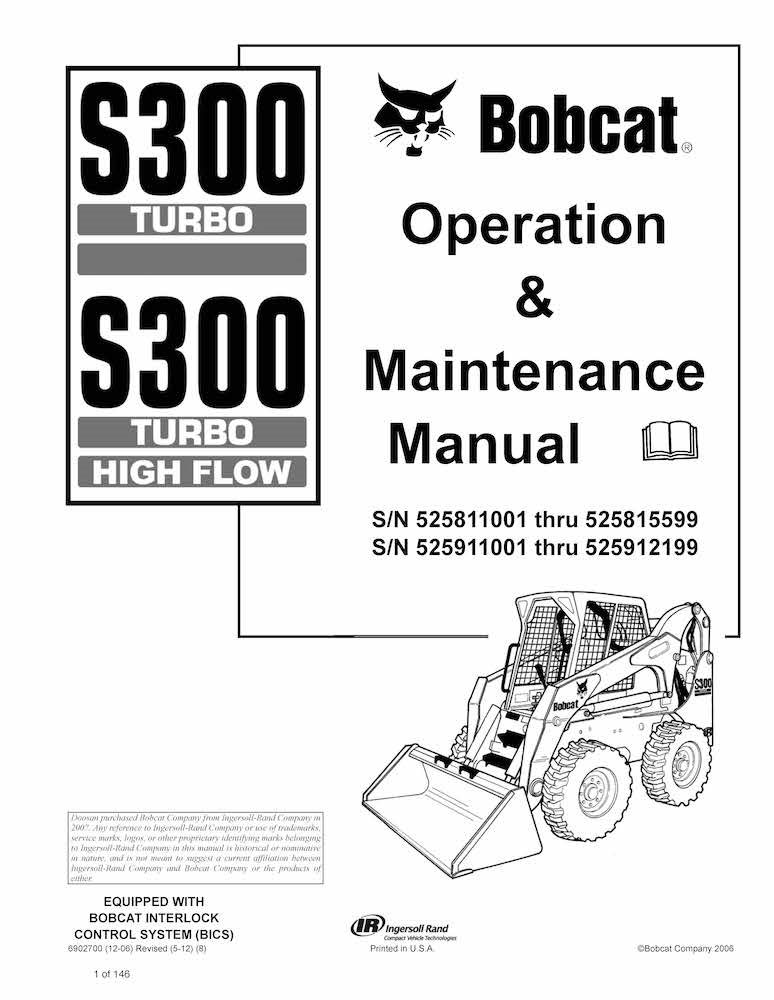 Bobcat S300, S300H cargador de dirección deslizante pdf manual de operación y mantenimiento