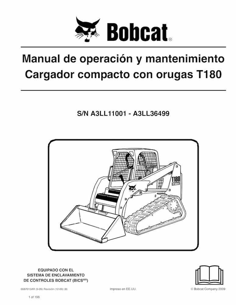Bobcat T180 cargador compacto de orugas pdf manual de operación y mantenimiento ES