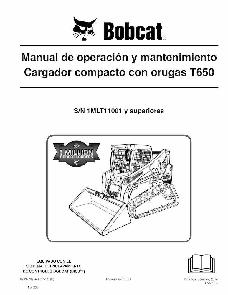 Bobcat T650 cargador compacto de orugas pdf manual de operación y mantenimiento ES