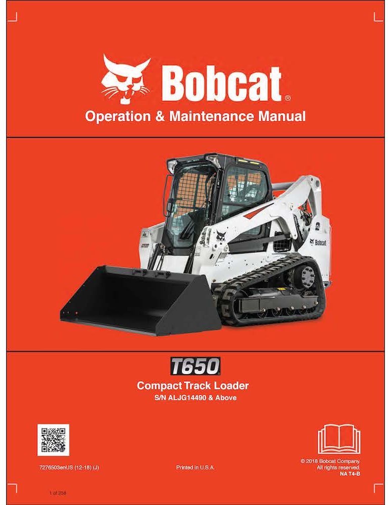 Manual de operación y mantenimiento en pdf del cargador compacto de orugas Bobcat T650
